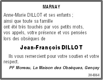 Cet espace « condoléances » est dédié à la mémoire de Monsieur Jean-François DILLOT.