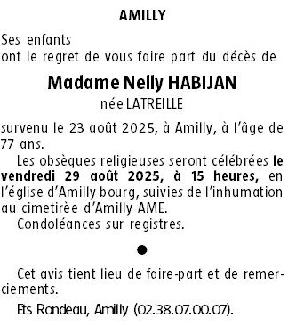 Cet espace « condoléances » est dédié à la mémoire de Madame Nelly HABIJAN née LATREILLE.
