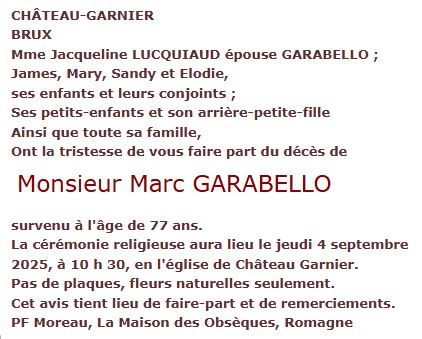 Cet espace « condoléances » est dédié à la mémoire de Monsieur Marc GARABELLO.