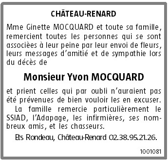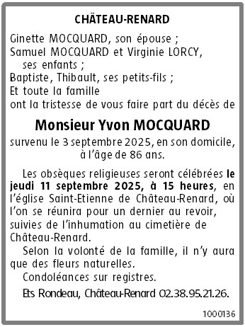 Cet espace « condoléances » est dédié à la mémoire de Monsieur Yvon MOCQUARD.