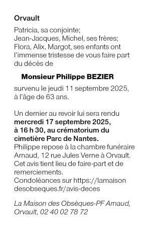 Cet espace « condoléances » est dédié à la mémoire de Monsieur Philippe BEZIER.