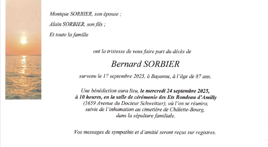 Cet espace « condoléances » est dédié à la mémoire de Monsieur Bernard SORBIER.
