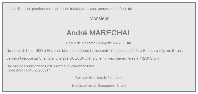 Cet espace « condoléances » est dédié à la mémoire de Monsieur André MARECHAL.