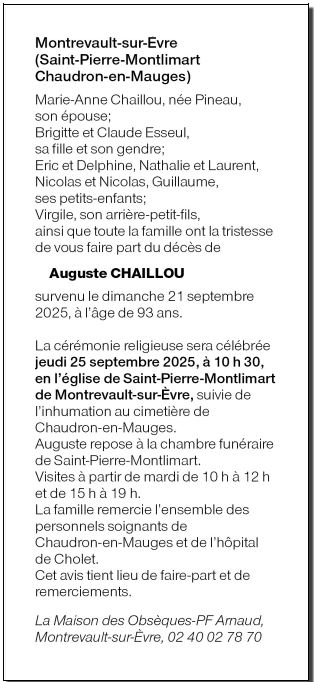 Cet espace « condoléances » est dédié à la mémoire de Monsieur Auguste CHAILLOU.