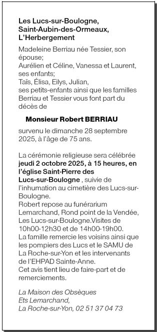 Décédé à Les Lucs-sur-Boulogne (85170) le dimanche 28 septembre 2025