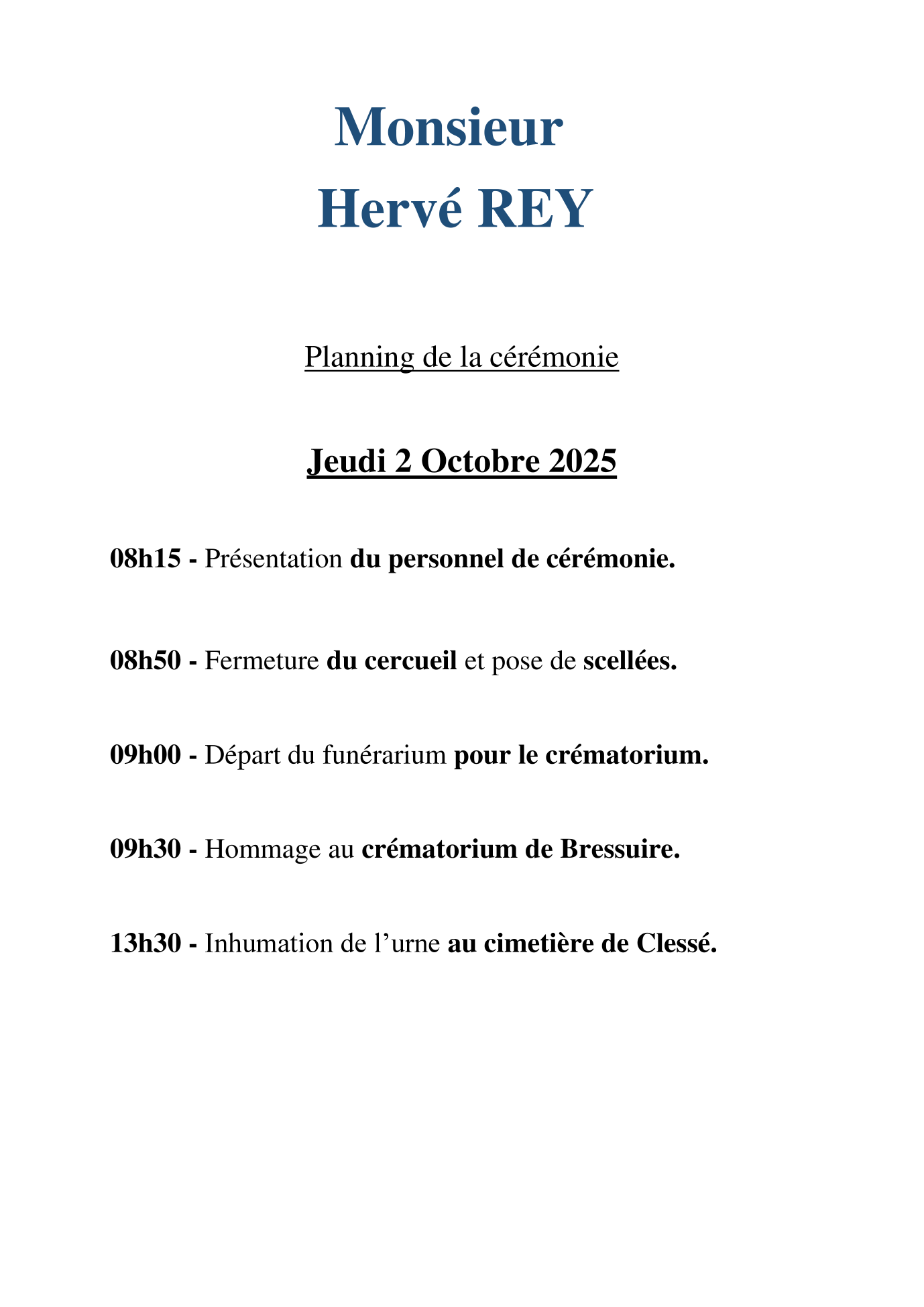 Cet espace « condoléances » est dédié à la mémoire de Monsieur Hervé REY.