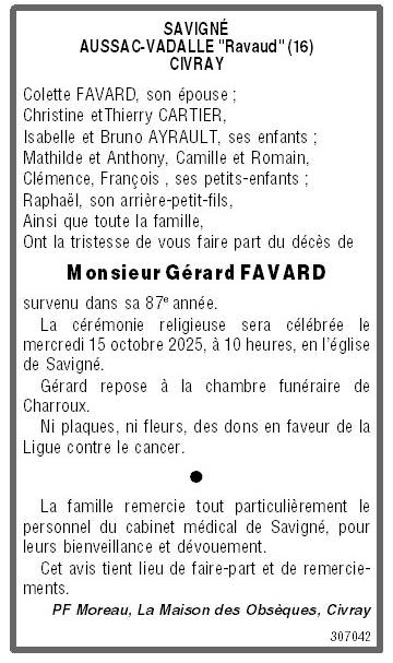 de Monsieur Gérard FAVARD
