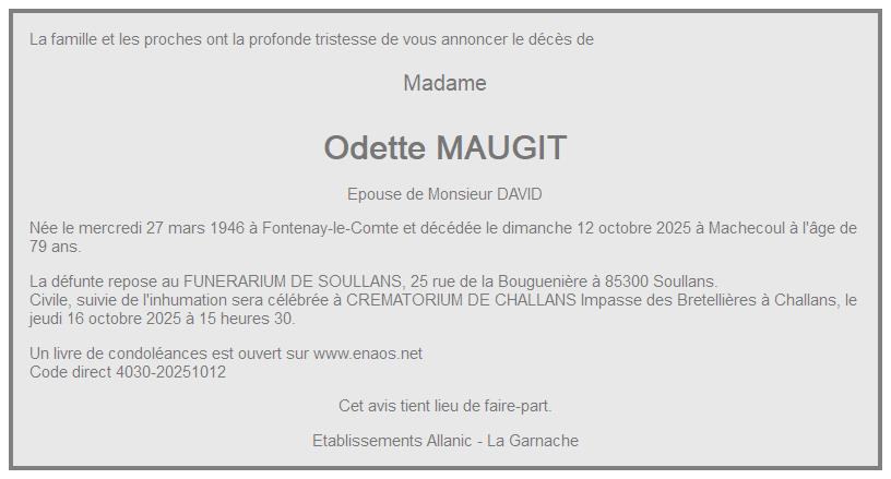 de Madame Odette DAVID née MAUGIT