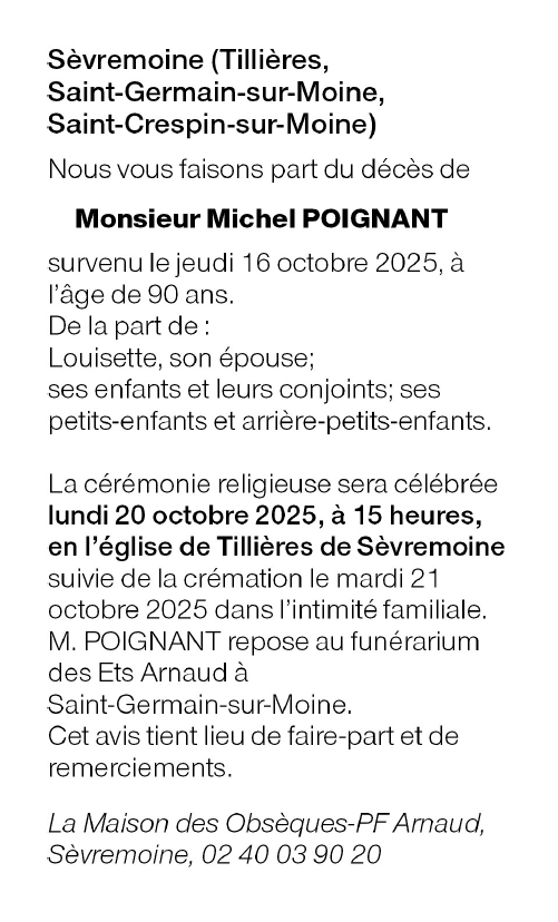 Décédé à Saint Germain sur Moine (49230) le jeudi 16 octobre 2025