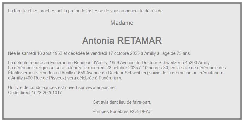 Cet espace « condoléances » est dédié à la mémoire de Madame Antonia BASTIEN née RETAMAR.