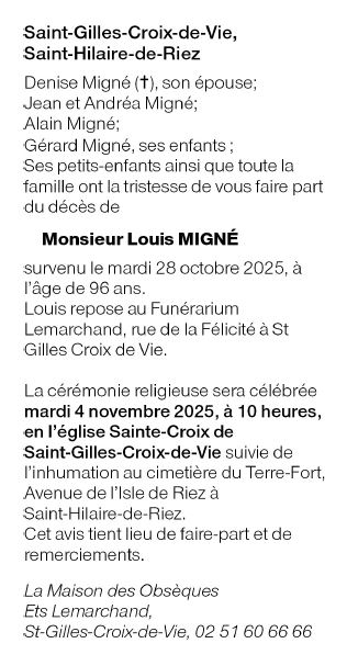 Cet espace « condoléances » est dédié à la mémoire de Monsieur Louis MIGNÉ.