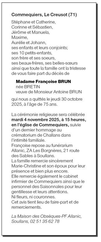 de Madame Françoise BRUN née BRETIN