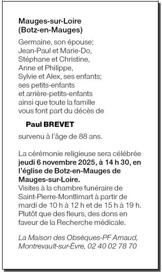Cet espace « condoléances » est dédié à la mémoire de Monsieur Paul BREVET.