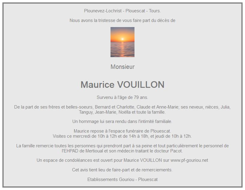 Cet espace « condoléances » est dédié à la mémoire de Monsieur Maurice VOUILLON.