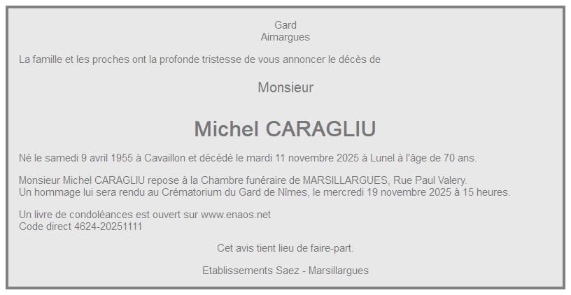 Cet espace « condoléances » est dédié à la mémoire de Monsieur Michel CARAGLIU.