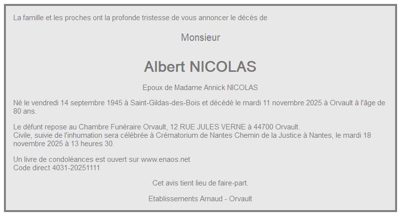 de Monsieur Albert NICOLAS