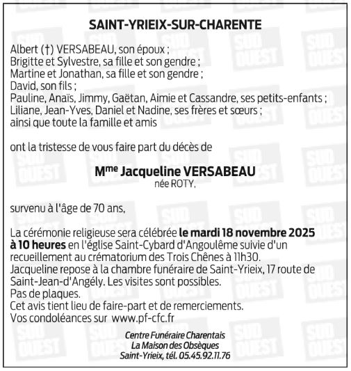 de Madame JACQUELINE VERSABEAU née ROTY