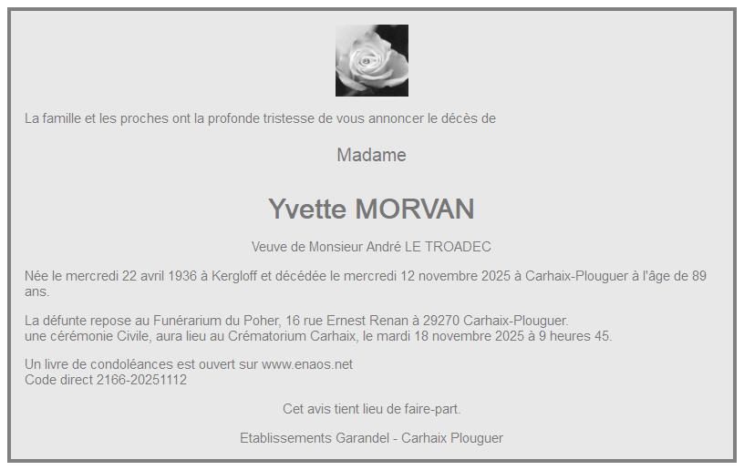 de Madame Yvette LE TROADEC née MORVAN