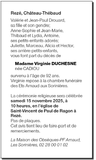de Madame Marie DUCHESNE née CADIOU
