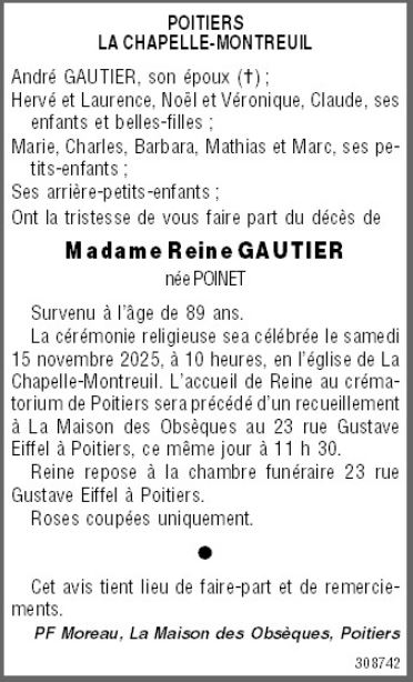de Madame Reine GAUTIER née POINET