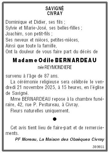 de Madame Odile BERNARDEAU née REYMONDIERE