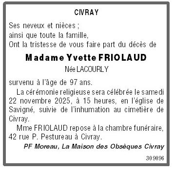 de Madame Yvette FRIOLAUD née LACOURLY