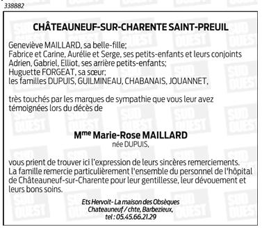 de Madame Marie-Rose MAILLARD née DUPUIS