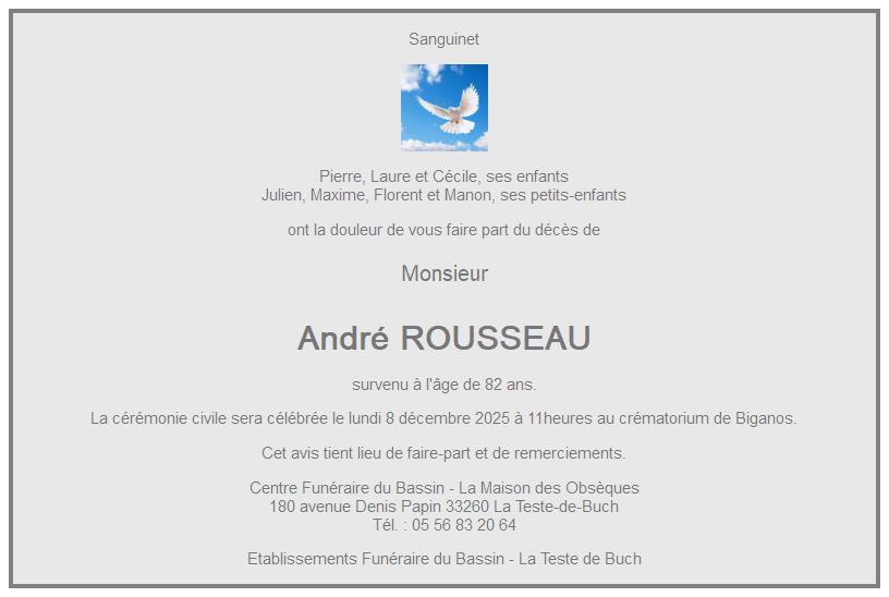 Cet espace « condoléances » est dédié à la mémoire de Monsieur André ROUSSEAU.
