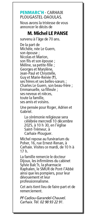de Monsieur Michel LE PANSE