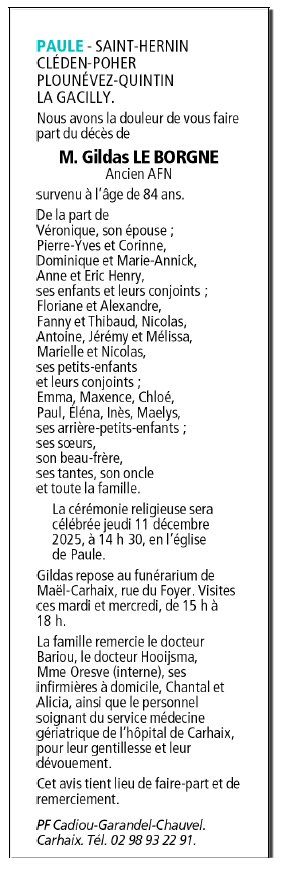Décédé à Carhaix-Plouguer (29270) le dimanche 7 décembre 2025