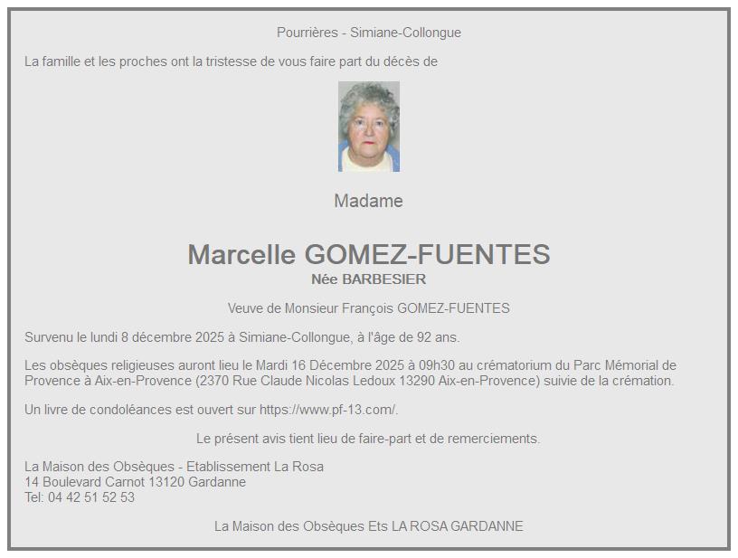 de Madame Marcelle GOMEZ-FUENTES née BARBESIER