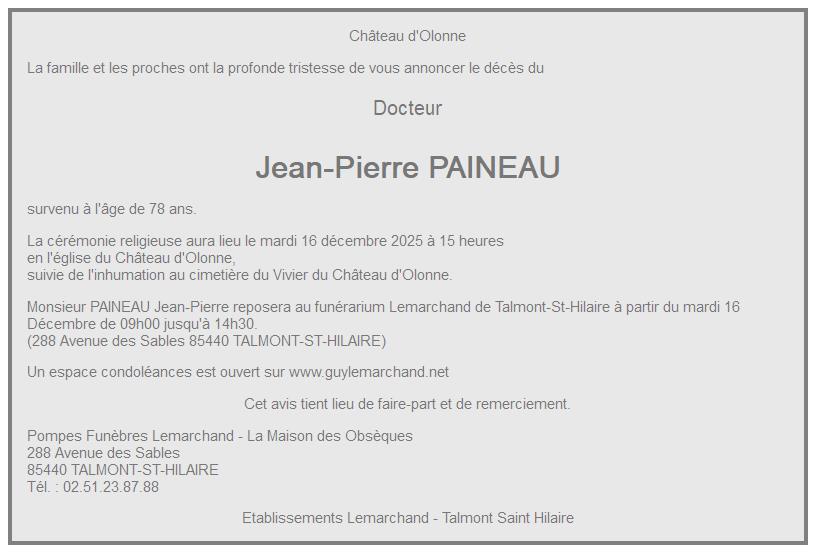 Cet espace « condoléances » est dédié à la mémoire de Monsieur Jean-Pierre PAINEAU.