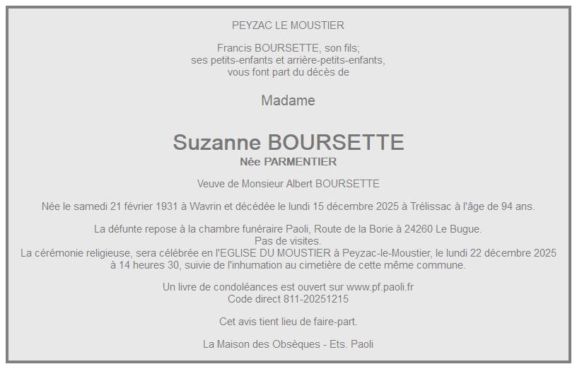 de Madame Suzanne BOURSETTE née PARMENTIER