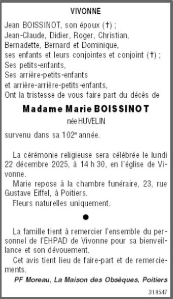 de Madame Marie BOISSINOT née HUVELIN