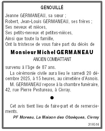Cet espace « condoléances » est dédié à la mémoire de Monsieur Michel GERMANEAU.