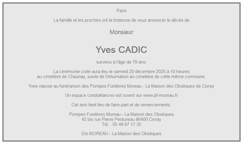 de Monsieur Yves CADIC