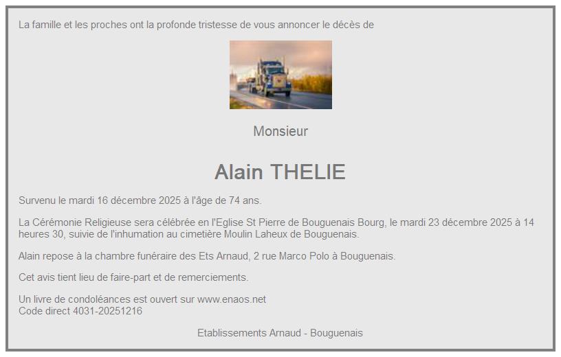 Cet espace « condoléances » est dédié à la mémoire de Monsieur Alain THELIE.