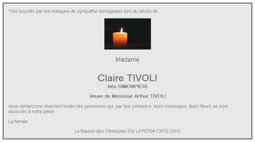 de Madame Claire TIVOLI née SIMONPIERI