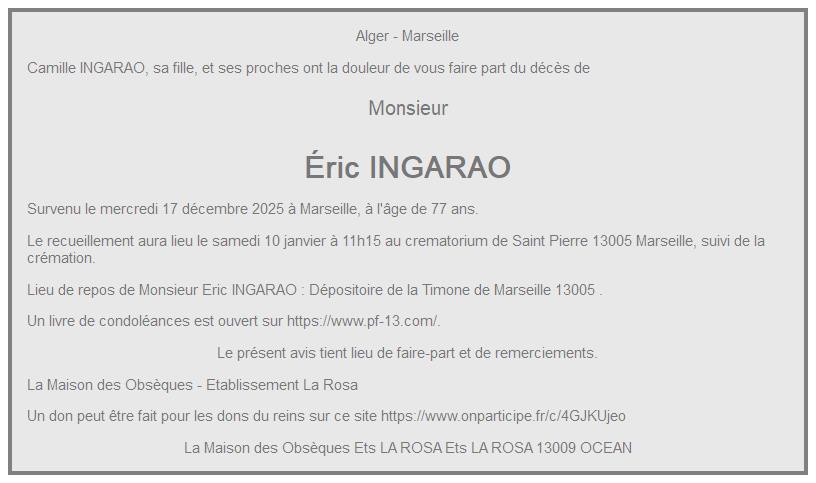 Cet espace « condoléances » est dédié à la mémoire de Monsieur Éric INGARAO.