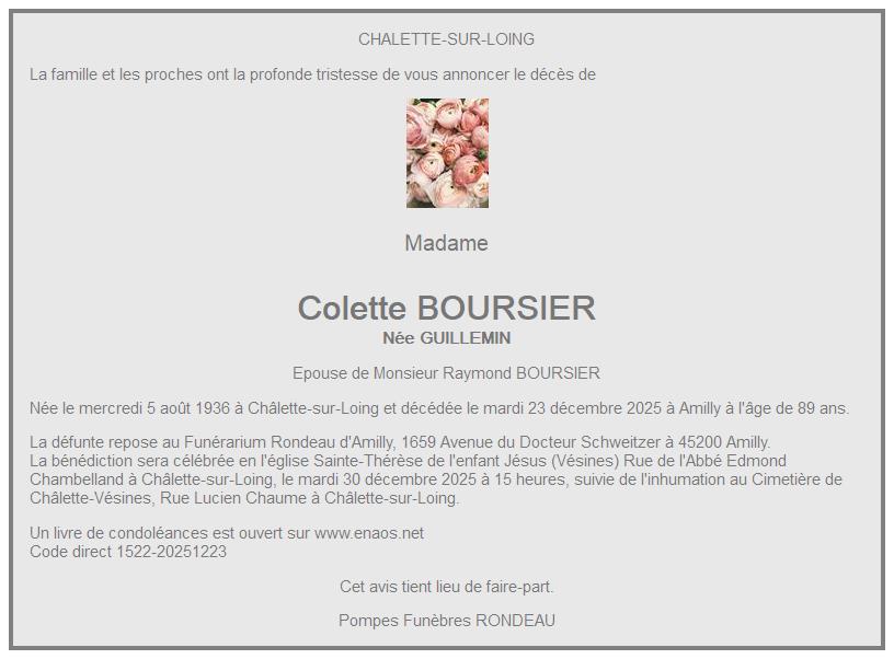de Madame Colette BOURSIER née GUILLEMIN