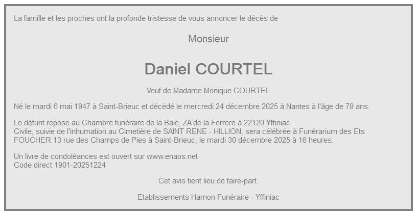 Cet espace « condoléances » est dédié à la mémoire de Monsieur Daniel COURTEL.