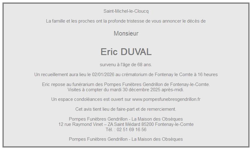 de Monsieur Eric DUVAL