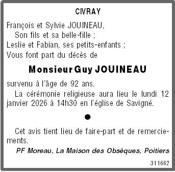 Cet espace « condoléances » est dédié à la mémoire de Monsieur Guy JOUINEAU.