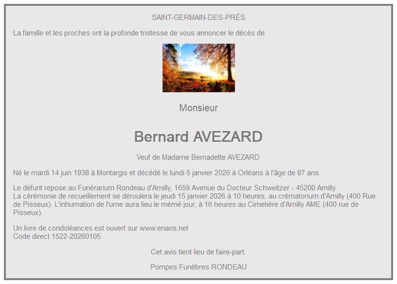 Cet espace « condoléances » est dédié à la mémoire de Monsieur Bernard AVEZARD.