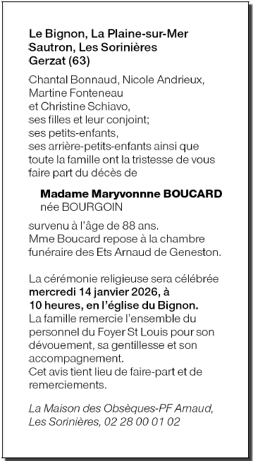 de Madame Maryvonne BOUCARD née BOURGOIN