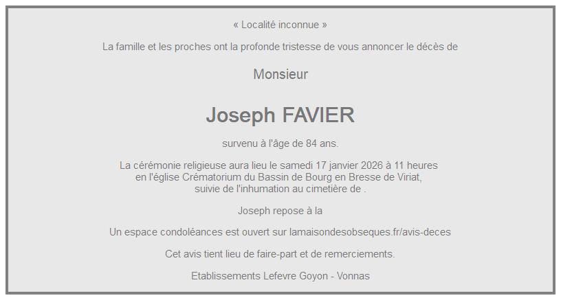 Cet espace « condoléances » est dédié à la mémoire de Monsieur Joseph FAVIER.