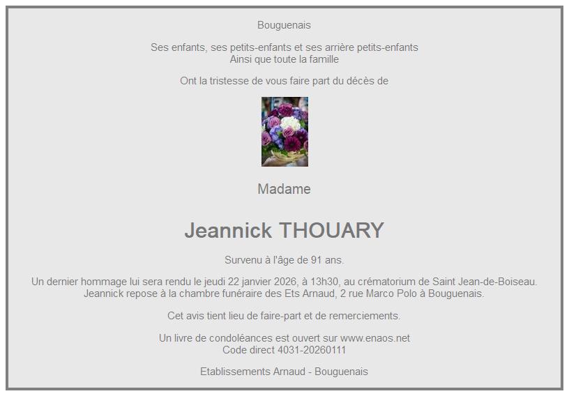 de Madame Jeannick GUILLET née THOUARY