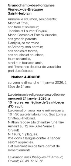 Cet espace « condoléances » est dédié à la mémoire de Monsieur Nathan AUDOIRE.