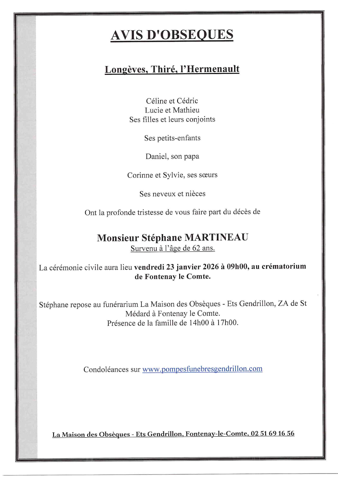 Cet espace « condoléances » est dédié à la mémoire de Monsieur Stéphane MARTINEAU.
