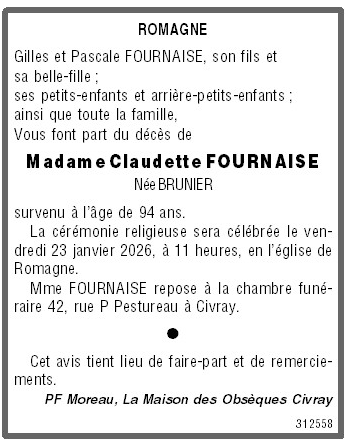 de Madame Claudette FOURNAISE née BRUNIER